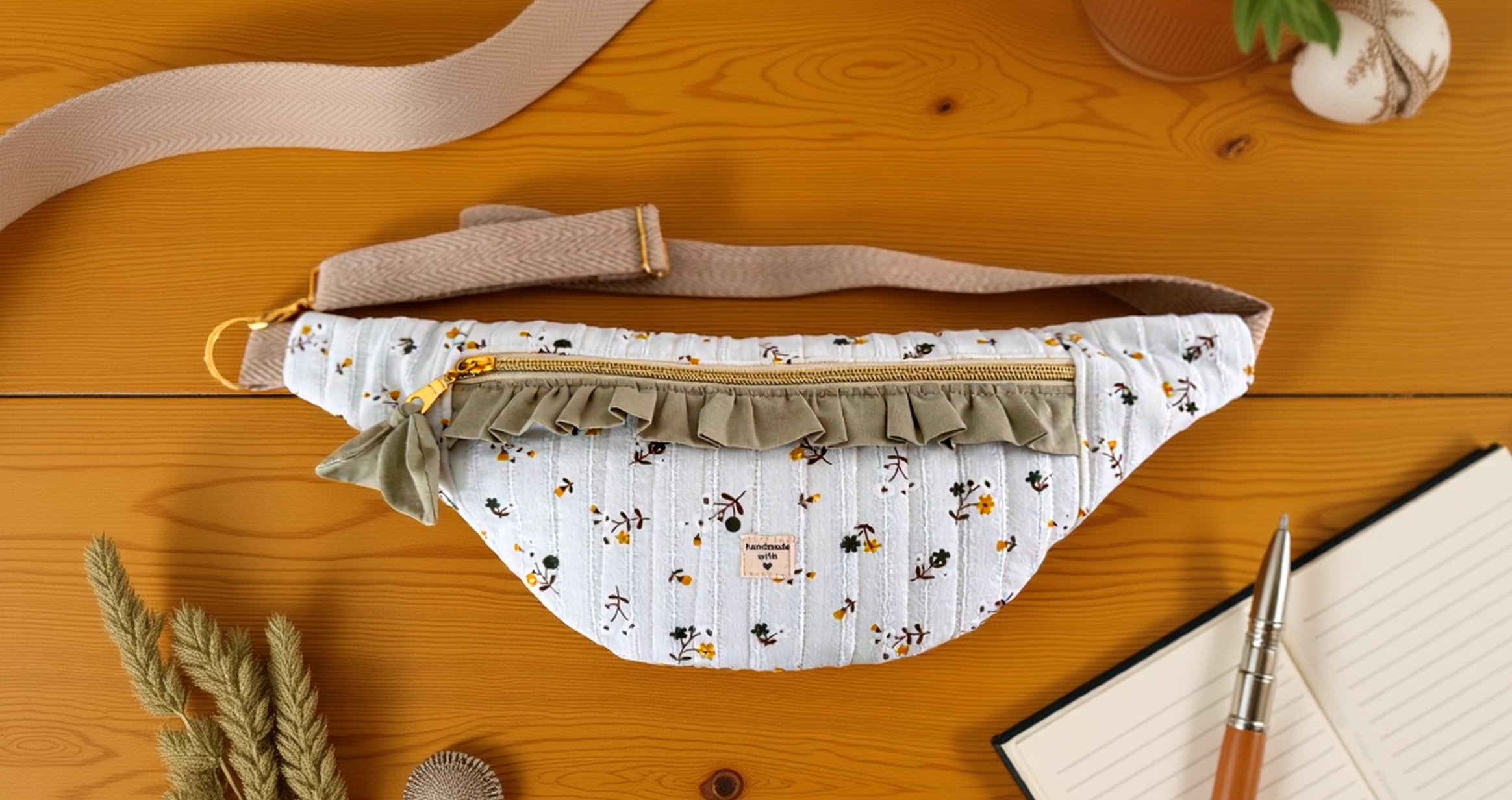 Patrón de costura neceser acolchado con lazo decorativo y fruncido
